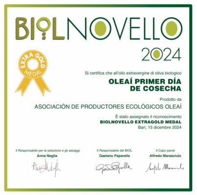 Nuestro AOVE primer día de cosecha ha conseguido varios galardones internacionales, repitiendo medalla extragold por tercer año consecutivo en los premios BIOL